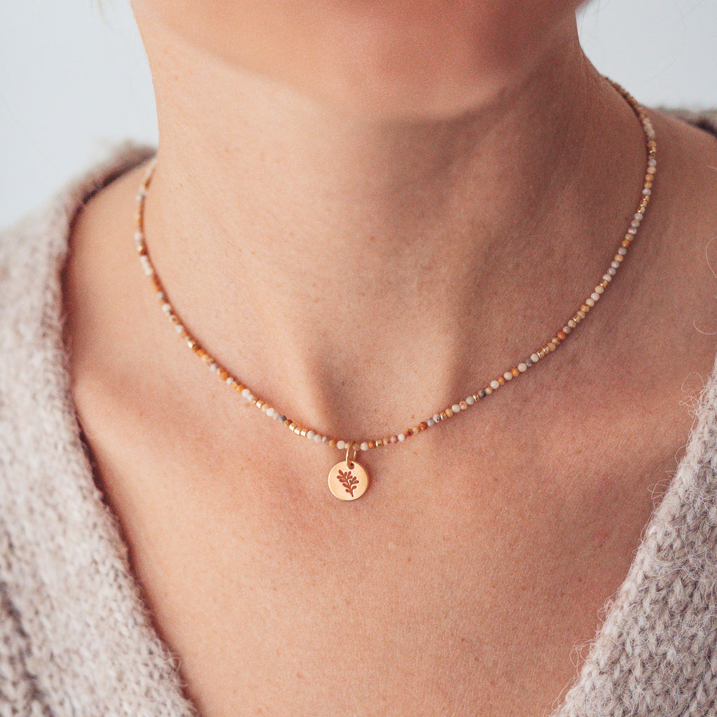 Agat ('agathos') z języka greckiego oznacza dobry, a jego nazwa pochodzi od sycylijskiej rzeki Achates (obecnie Dirillo), gdzie wydobywano go już tysiące lat temu. Agat jest odmianą chalcedonu, to wielobarwny minerał o ciekawej, warstwowej budowie (kolory warstw - pasów - zależą od wrostków innych minerałów). Ten półszlachetny kamień od wieków jest atrakcyjnym materiałem jubilerskim i ozdobnym - zachwyca bogatą kolorystyką i szerokim zastosowaniem. Agat w delikatnych, miodowych tonach wprowadza subtelne ciepło do stylizacji i doskonale sprawdza się w codziennych oraz eleganckich sytuacjach.